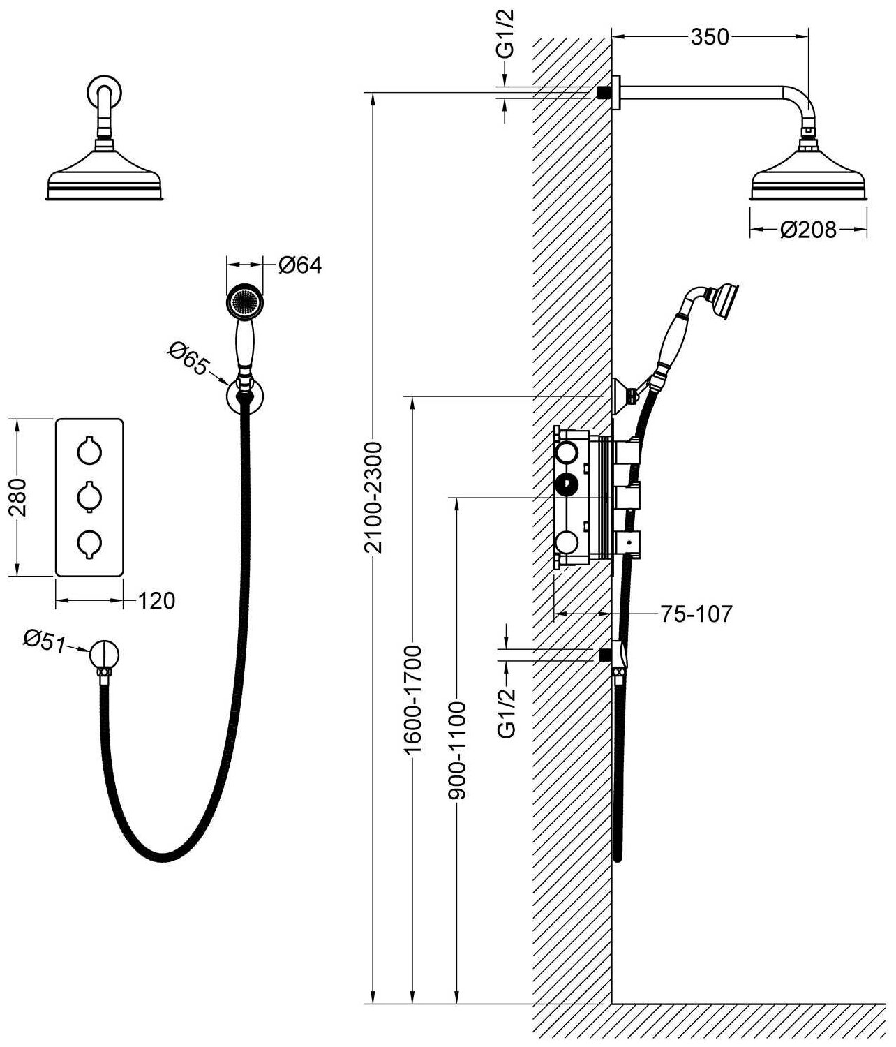 | Комплектация | Смеситель с монтажной коробкой / скрытого монтажа / с термостатом - 1 шт. Тропический душ / потолочный / скрытого монтажа / (латунный) с монтажной коробкой - 1 шт. Подвесные кронштейны для тропической лейки - 1 шт. Подводка к тропической лейке 1 м - 1 шт. Ручная лейка 3-режимная (пластик) - 1 шт. Держатель ручной лейки (латунный) - 1 шт. Декоративная накладка смесителя (латунная) - 1 шт. Ручка дивертора - 1 шт. Ручка управления термостатом - 1 шт. Шланг душа 1,5 м - 1 шт. Излив-дивертор / поворотный из стены - 1 шт. Инструкция - 1 шт. |