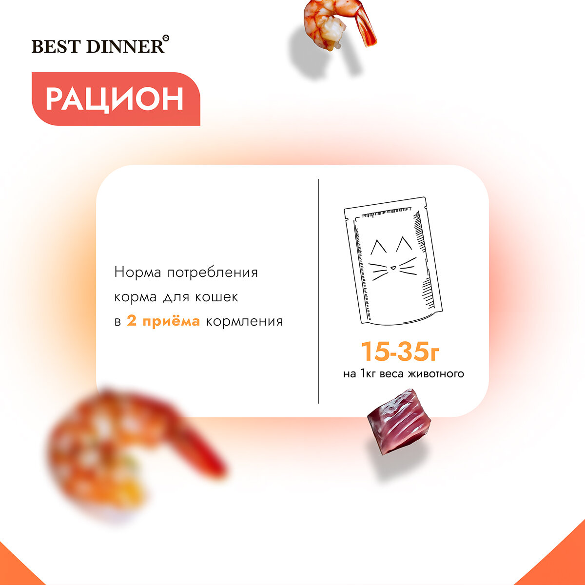 | Дозировка | Норма потребления корма для кошек 15-35 г на кг веса животного в 2 приема кормления. |