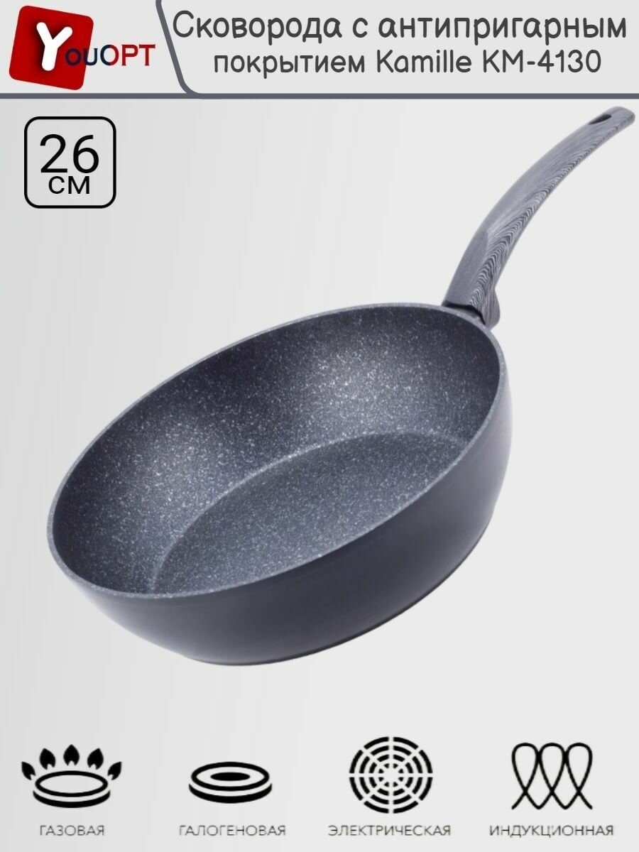 Сковорода Kamille 260х55 алюминиевая с гранитным покрытием серая