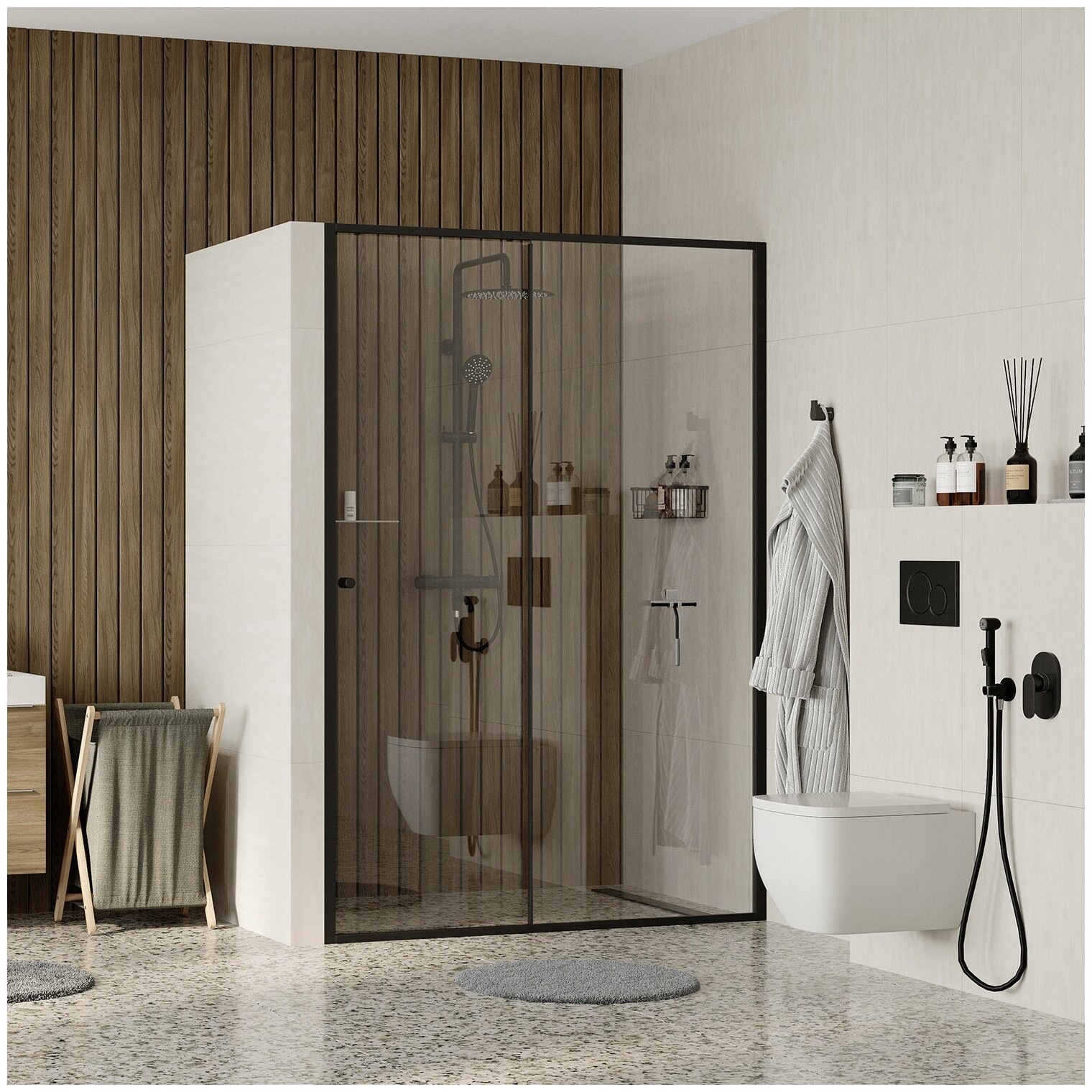 Душевая перегородка, черный, прозрачное стекло, WasserKRAFT Dill 61S13