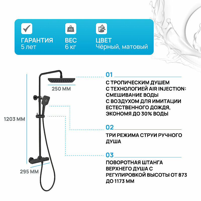 Душевая система Vincea Next с термостатом, черная (VSFS-1N0TMB)