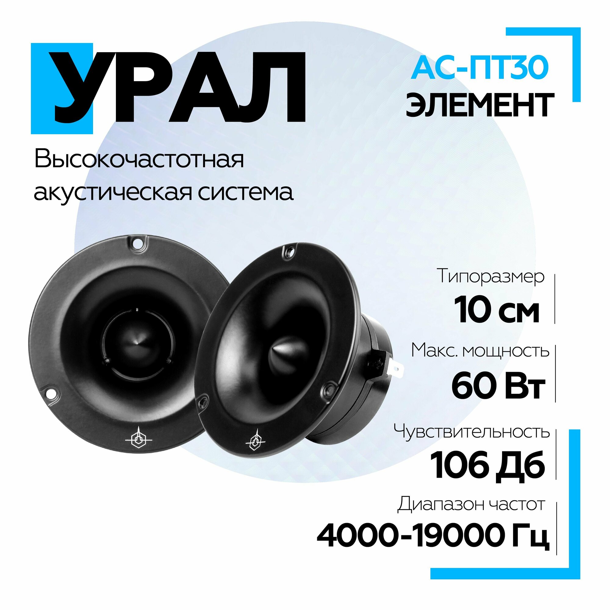Высокочастотная акустическая система (рупор) урал патриот АС-ПТ30 элемент, 4 дюйма (10 см), 4000-19000 Гц, З0 Вт, 2 Динамика