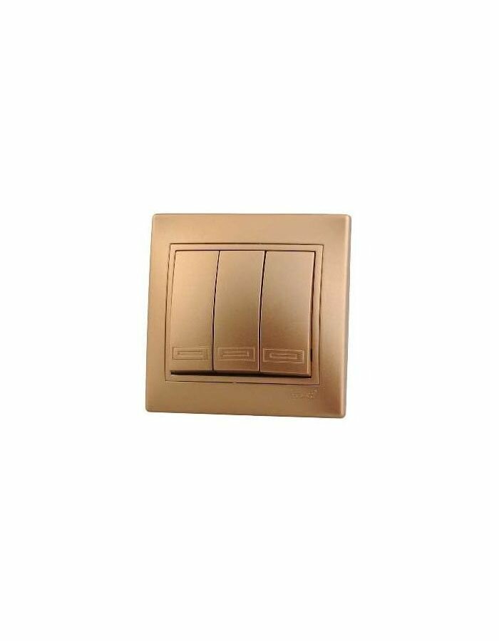 Купить Выключатель 3-кл. СП Mira 10А IP20 со вставкой зол. метал. LEZARD 701-1313-109