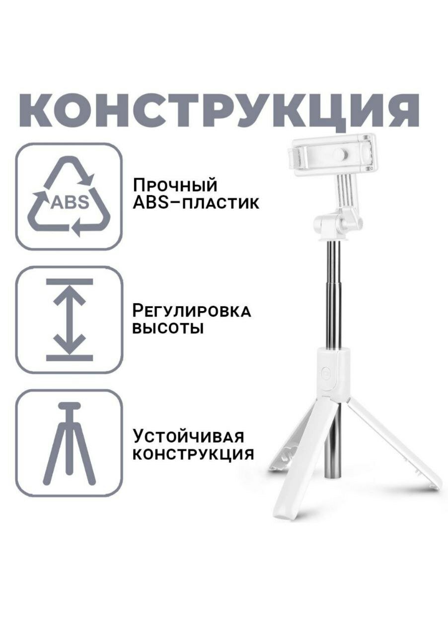 Монопод / Трипод / Селфипалка с Bluetooth пультом R1S / Монопод для селфи / белый