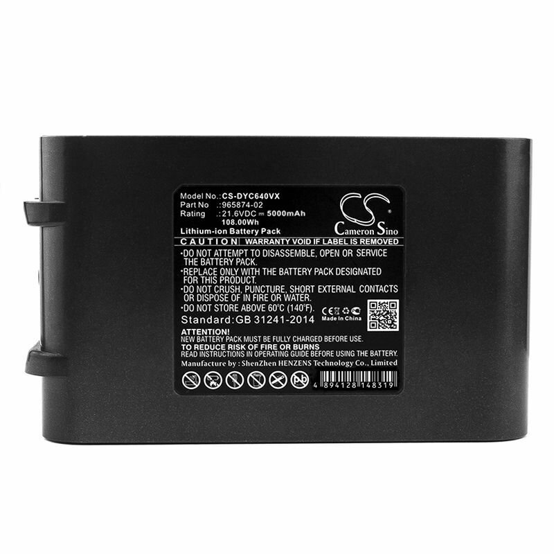 Аккумуляторная батарея CameronSino CS-DYC640VX для пылесоса Dyson V6, DC58, DC59, DC61, DC72, (61034-01, SV04) 5.0Ah 21.6V (не для настенной зарядки) интересное: