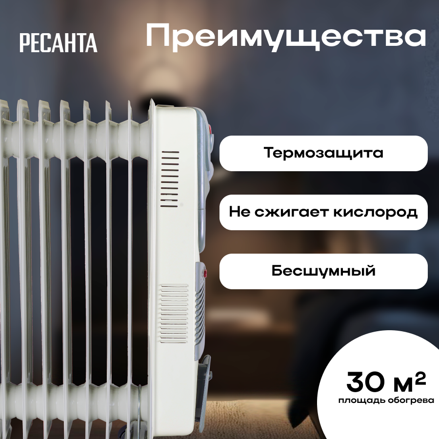 Масляный обогреватель Ресанта ОМ-9АВ (2.4 кВт) интересное: