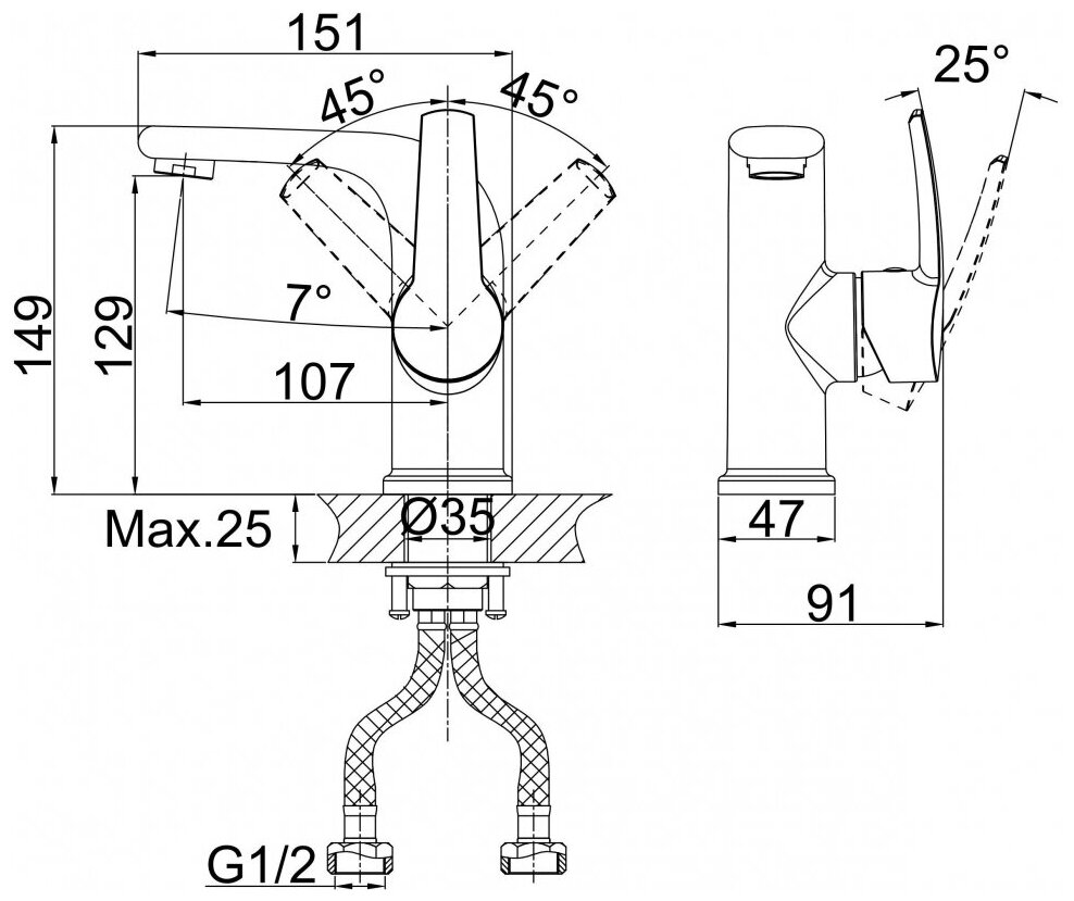 | Тип подводки | гибкая |