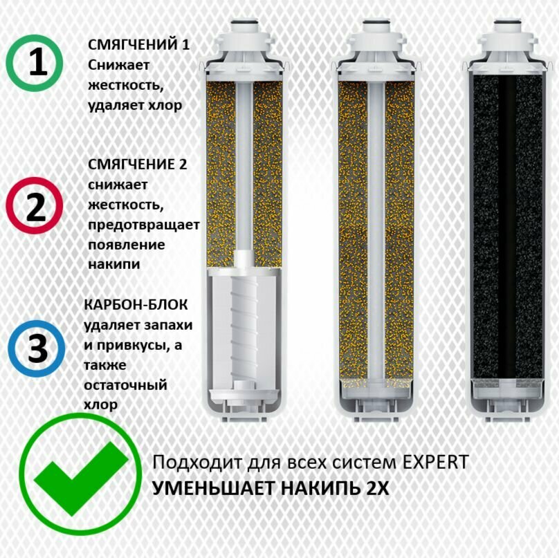 | Дополнительная информация | в комплекте картридж ЭКСПЕРТ Механика, картридж ЭКСПЕРТ Смягчение, картридж ЭКСПЕРТ ПостКарбон; технология SmartLock предотвращает извлечение фильтроэлемента под давлением |