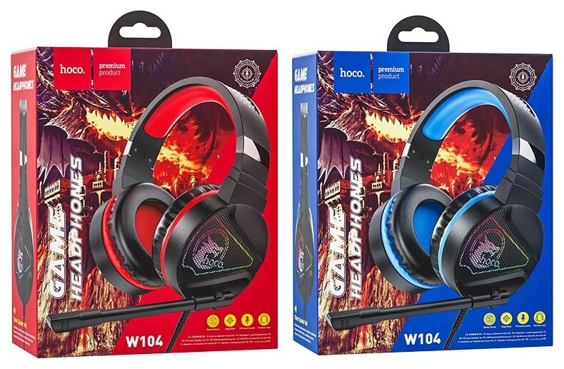 Купить Наушники игровые Hoco W104 Drift gaming headphones, USB + 3.5мм, кабель 2м, красный
