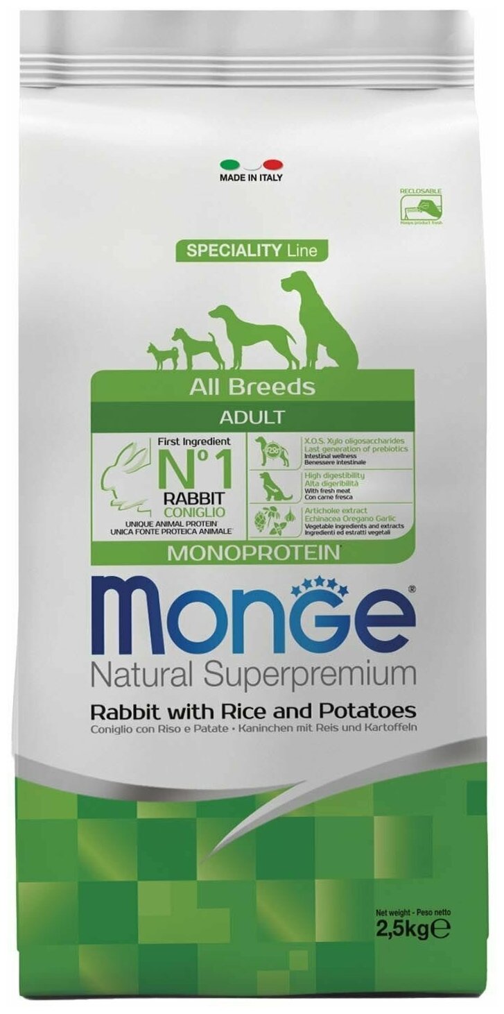 Купить MONGE SPECIALITY DOG для взрослых собак всех пород с кроликом, рисом и картофелем (2,5 кг)