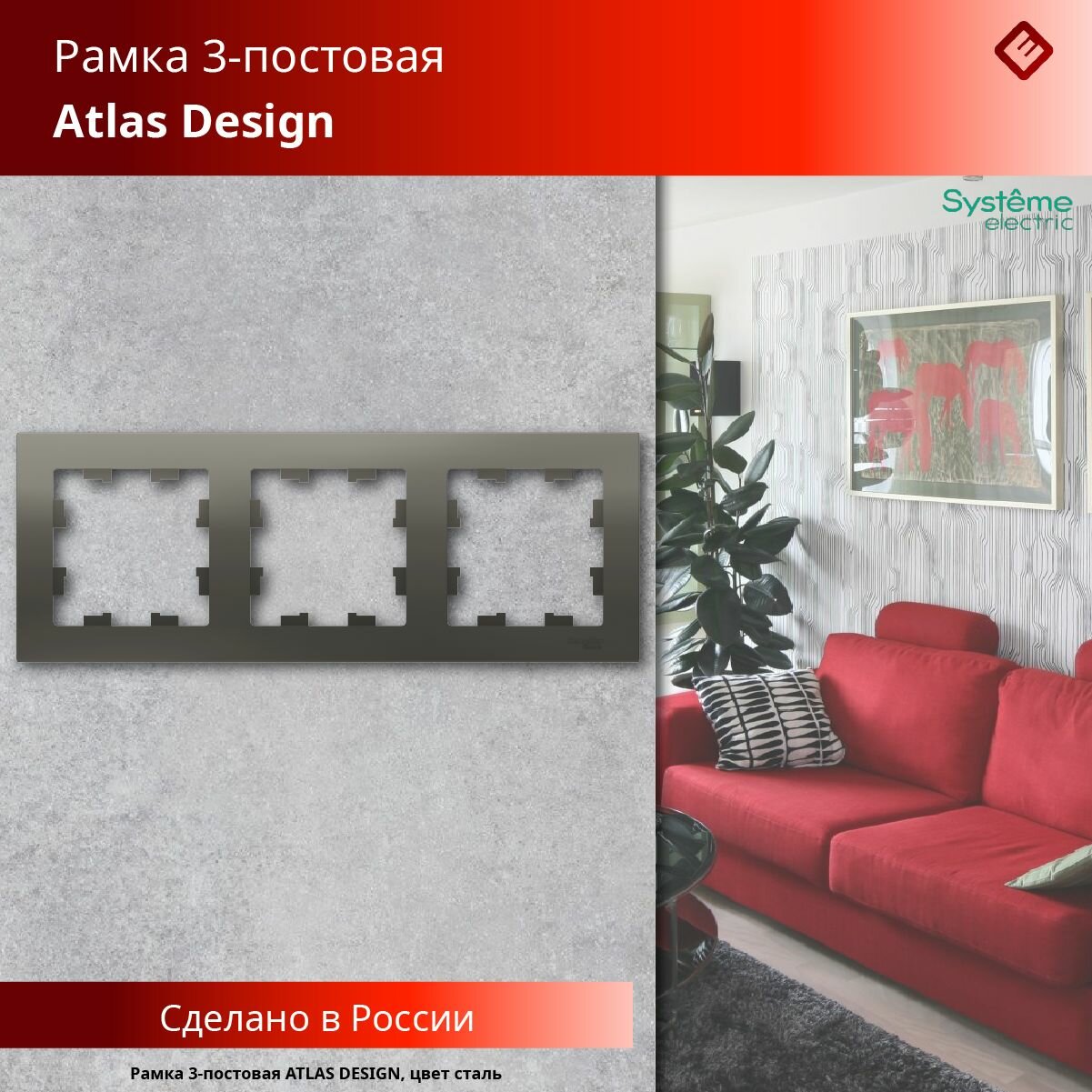 Купить SE AtlasDesign Сталь Рамка 3-ая, универсальная