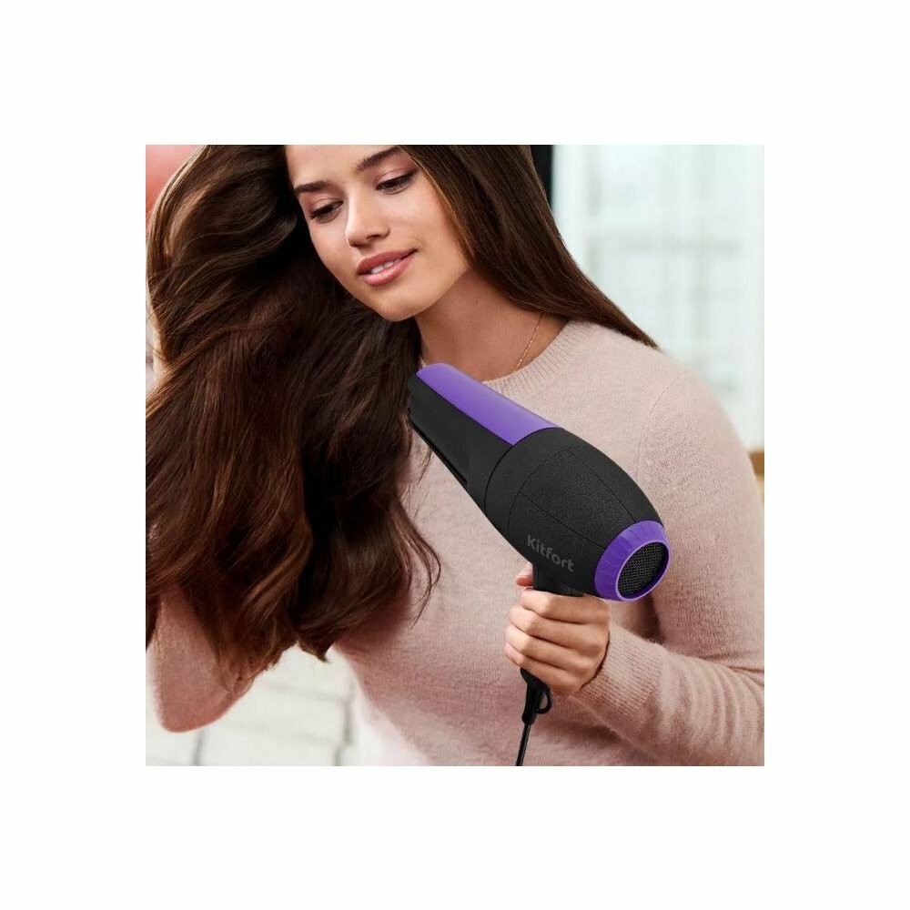 Фен KitFort КТ-3232-1, 2000Вт, черный и фиолетовый