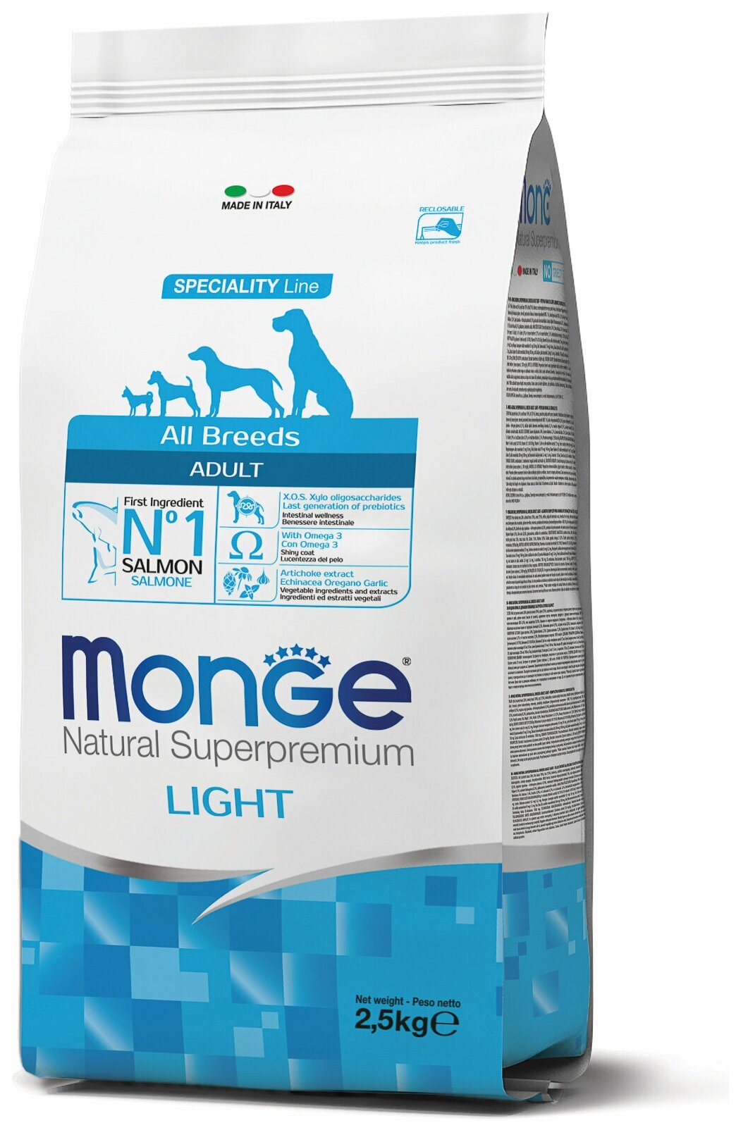 Cухой корм Monge Dog Speciality Line Light корм для взрослых собак всех пород, низкокалорийный, лосось с рисом 2,5 кг