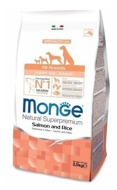 Корм для щенков MONGE Dog Monoprotein всех пород лосось с рисом сухой 2.5кг