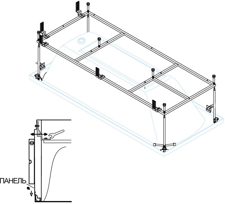 Для ванны Roca SURESTE 150х70см монтажный комплект (ZRU9302779) (рама, слив-перелив с сифоном, крепеж к стене, крепеж панели)