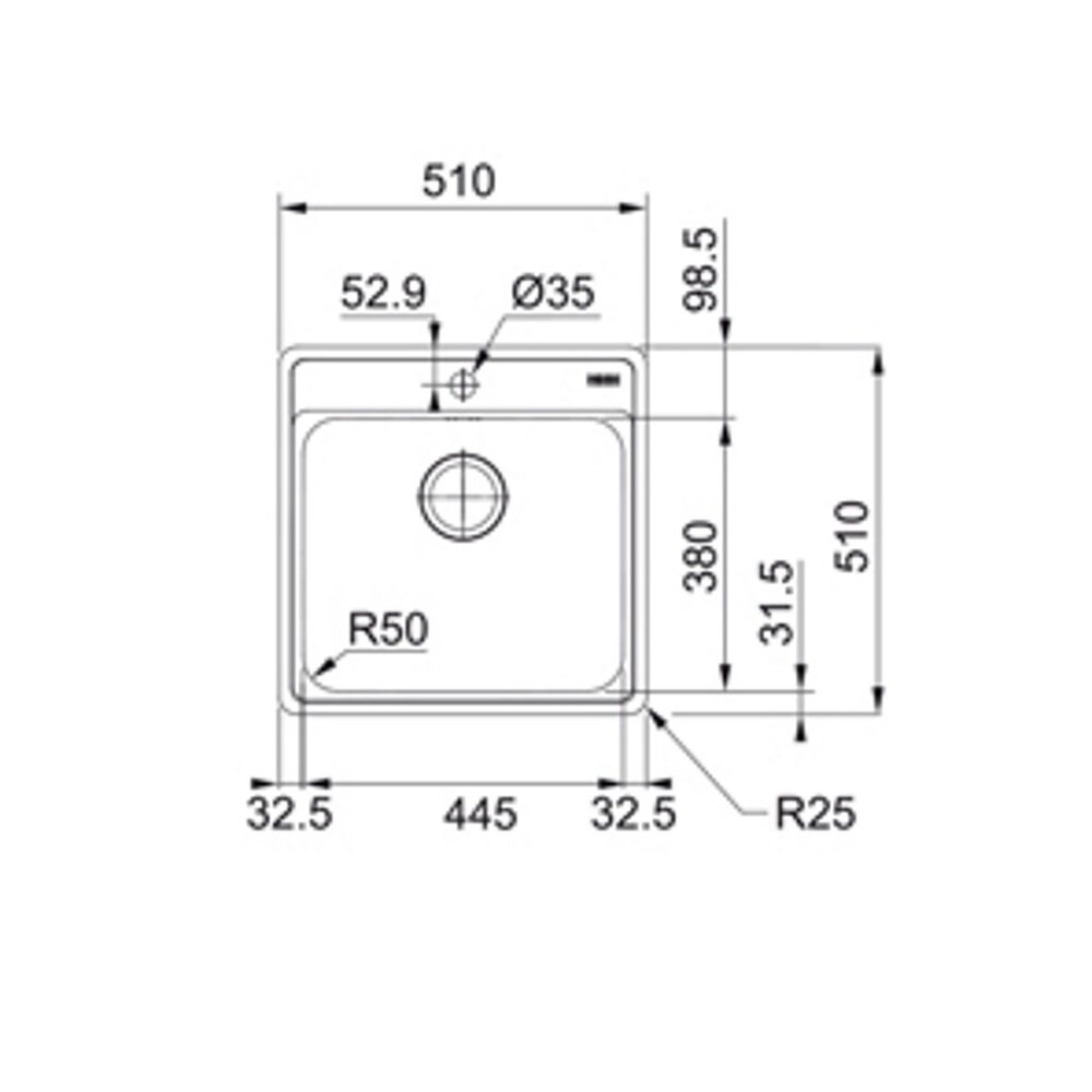 Franke Мойка Franke 101.0689.942/ Best, Серия BELL, Мойка BCX 610-51 TL, мойка 510 x 510 mm, чаша 445 x 380 x 200 mm, монтаж сверху, скрытый перелив, крепления FastFix