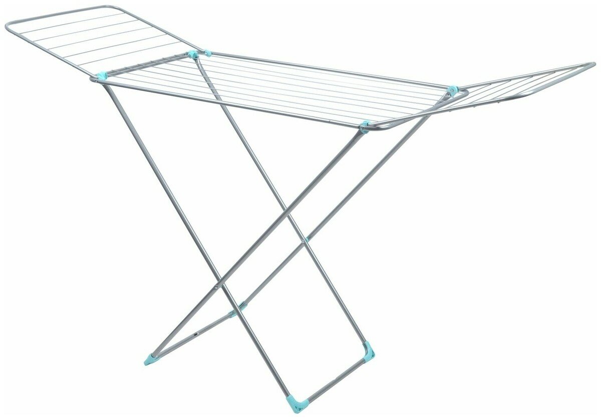 Сушилка для белья напольная складная, серебряный, 3 зоны, до 15 кг. Пластмассовые наконечники на струнах обеспечивают дополнительную устойчивость и предотвращают скольжение белья