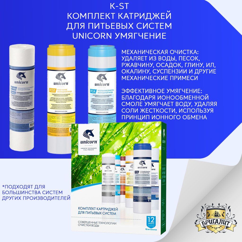 Комплект картриджей Unicorn K-ST, PS-10. FCST-10. FCA-10, очистка+умягчения воды Unicorn интересное: