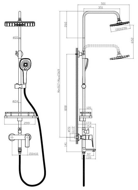Душевая система Rossinka RS27-46 с регулируемой высотой штанги интересное: