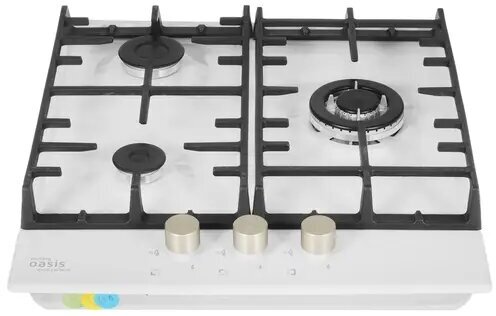 Варочная панель газовая встраиваемая Оазис P-3MWT эмалированная сталь белый 90.7х460х520мм 3 конфорки 2 решетки электроподжиг / плита для кухни