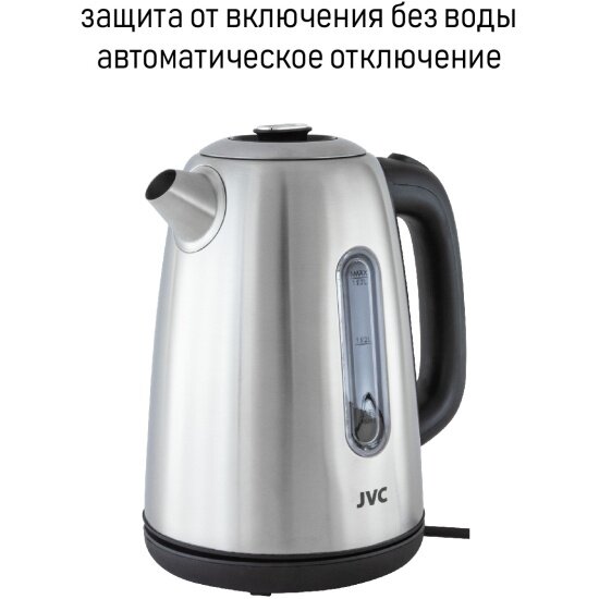 Чайник электрический JVC, JK-KE1715, серый, 1.7 л, 2200 Вт, скрытый нагревательный элемент, нержавеющая сталь