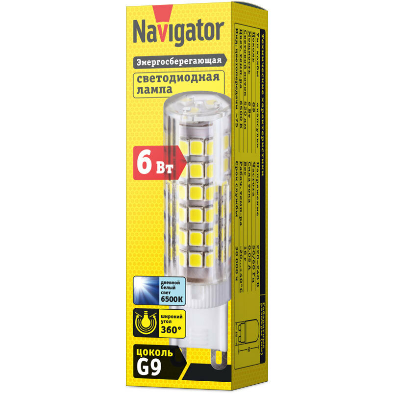 Лампа светодиодная Navigator 14 012, 6 Вт, цоколь G9, холодный свет 6500К, упаковка 1 шт.