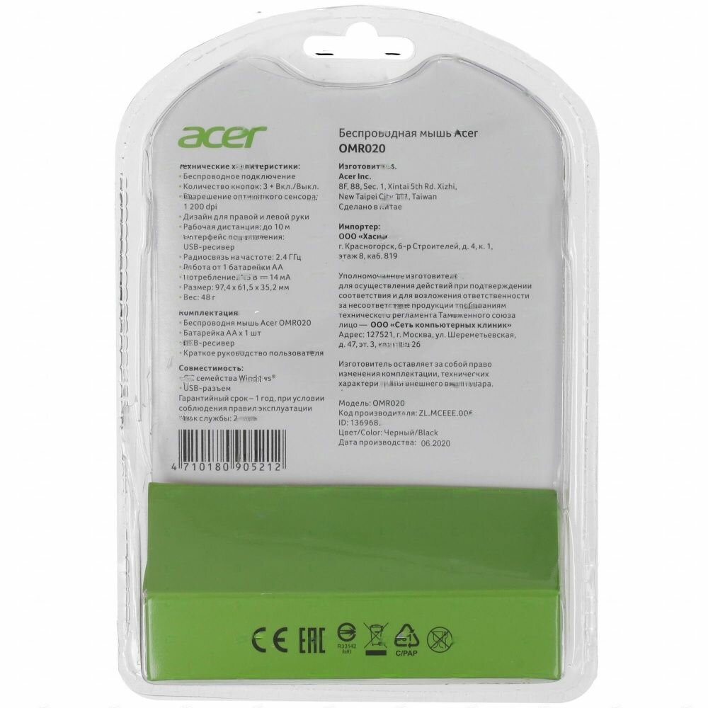 Мышь беспроводная Acer OMR020 (ZL.MCEEE.006), черный