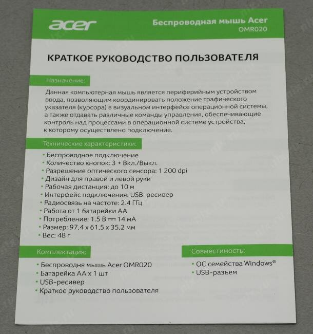 СохранитьМышь беспроводная ACER OMR020 (ZL.MCEEE.006) интересное: