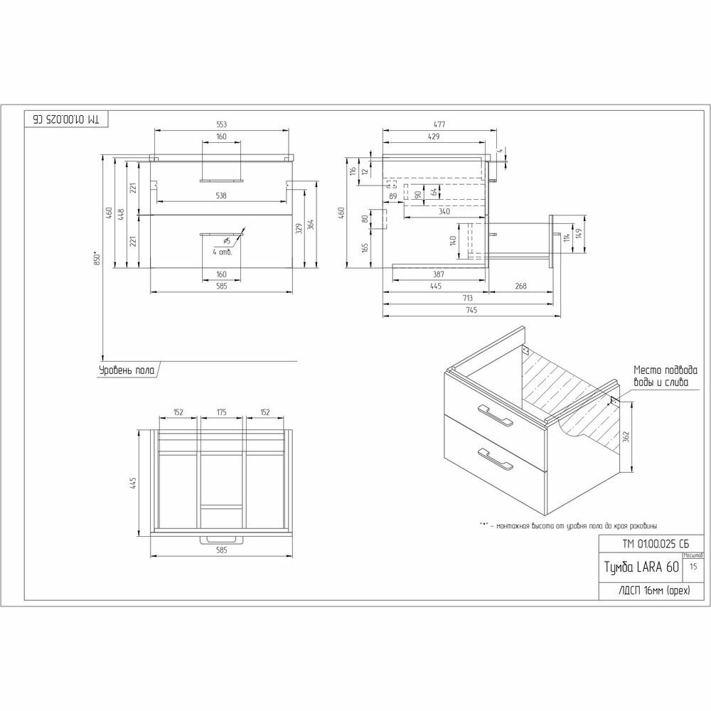 Тумба под раковину Cersanit подвесная Lara 60 орех (64134) интересное: