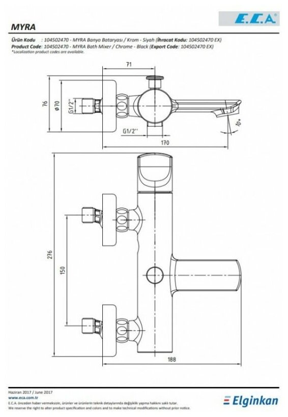 E.C.A. Смеситель E.C.A. Myra 104502470EX для ванны с душем