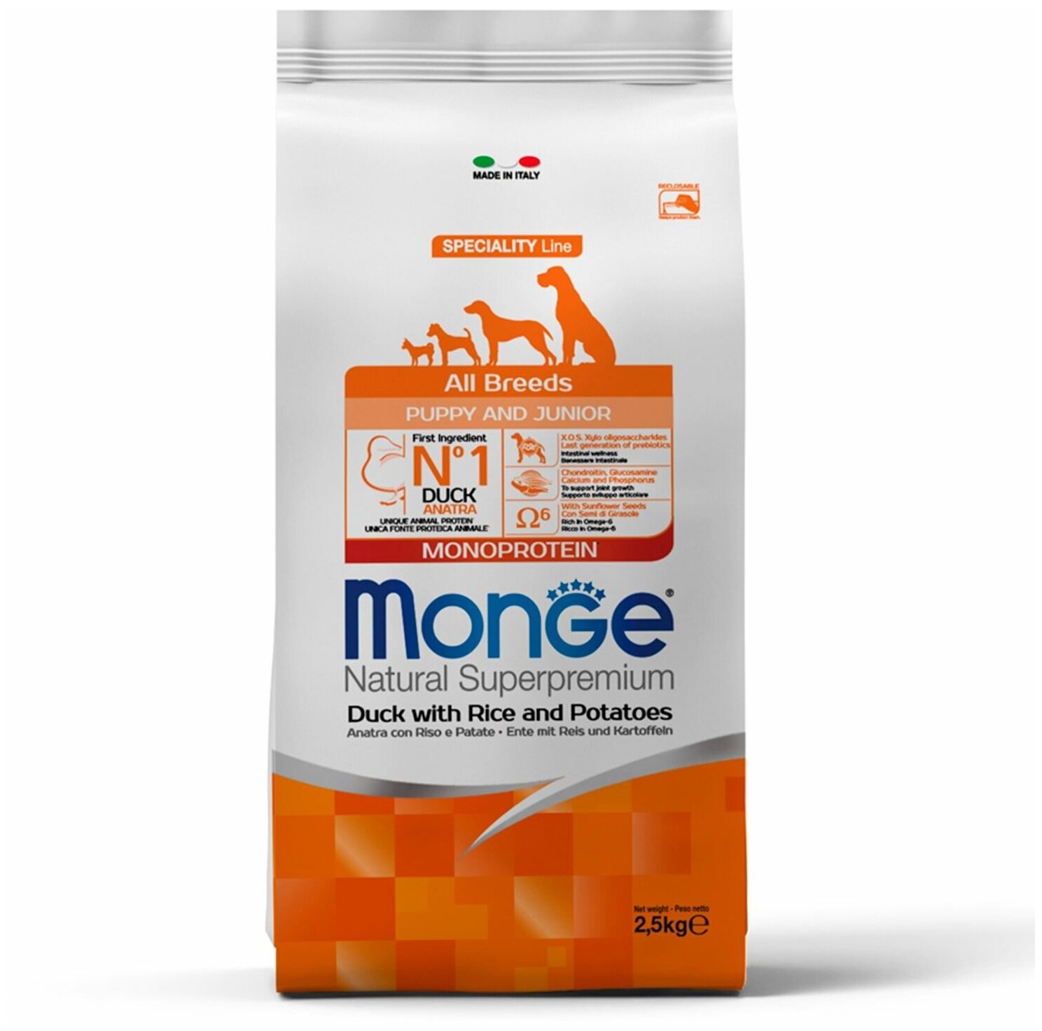 Купить Monge Dog Speciality Line Monoprotein сухой корм для щенков всех пород с уткой, рисом и картофелем - 12 кг