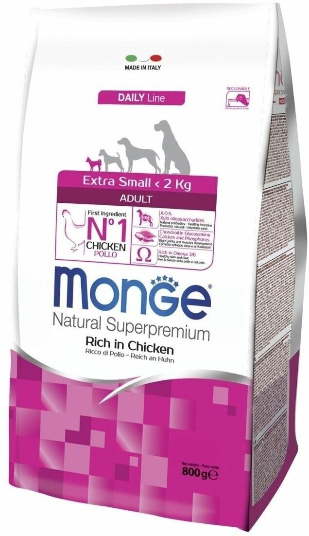 Корм сухой Monge "Dog Extra Small", для щенков миниатюрных пород, с курицей, 800x2 шт