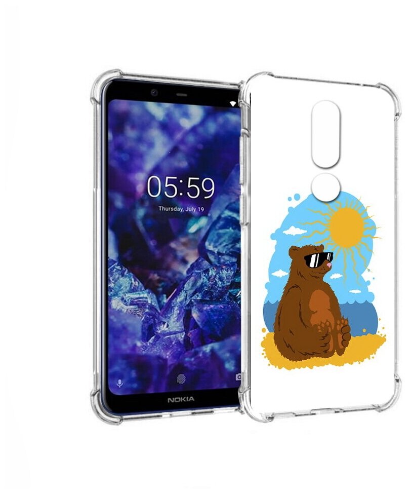 Чехол задняя-панель-накладка-бампер MyPads медведь на чиле для Nokia 5.1 Plus/Nokia X5 противоударный интересное:
