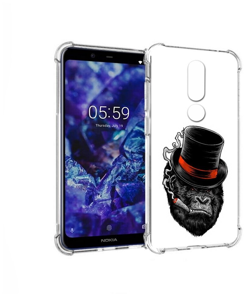 Чехол задняя-панель-накладка-бампер MyPads дизайнерская горилла для Nokia 5.1 Plus/Nokia X5 противоударный интересное:
