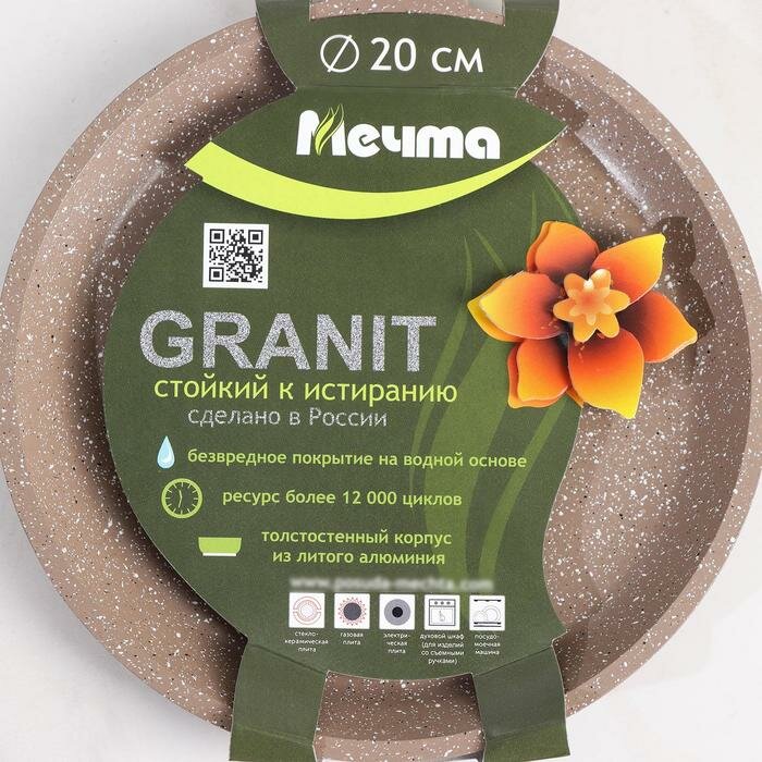 Мечта Сковорода блинная Гранит brown, d=20 см, пластиковая ручка, антипригарное покрытие, цвет коричневый интересное:
