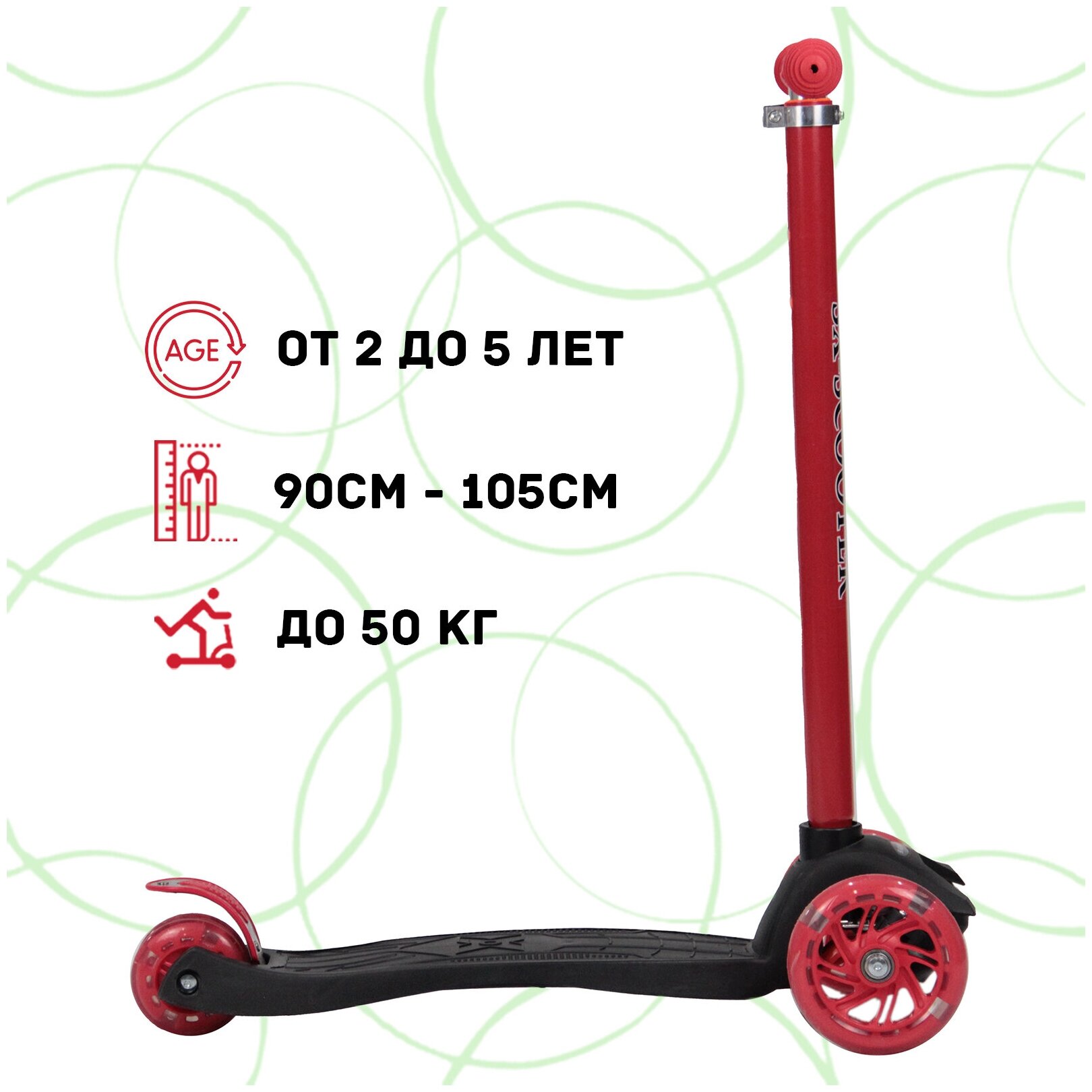 Самокат трехколесный детский sx Макси, со светящимися колесами, для детей 2-5 лет, черно-красный
