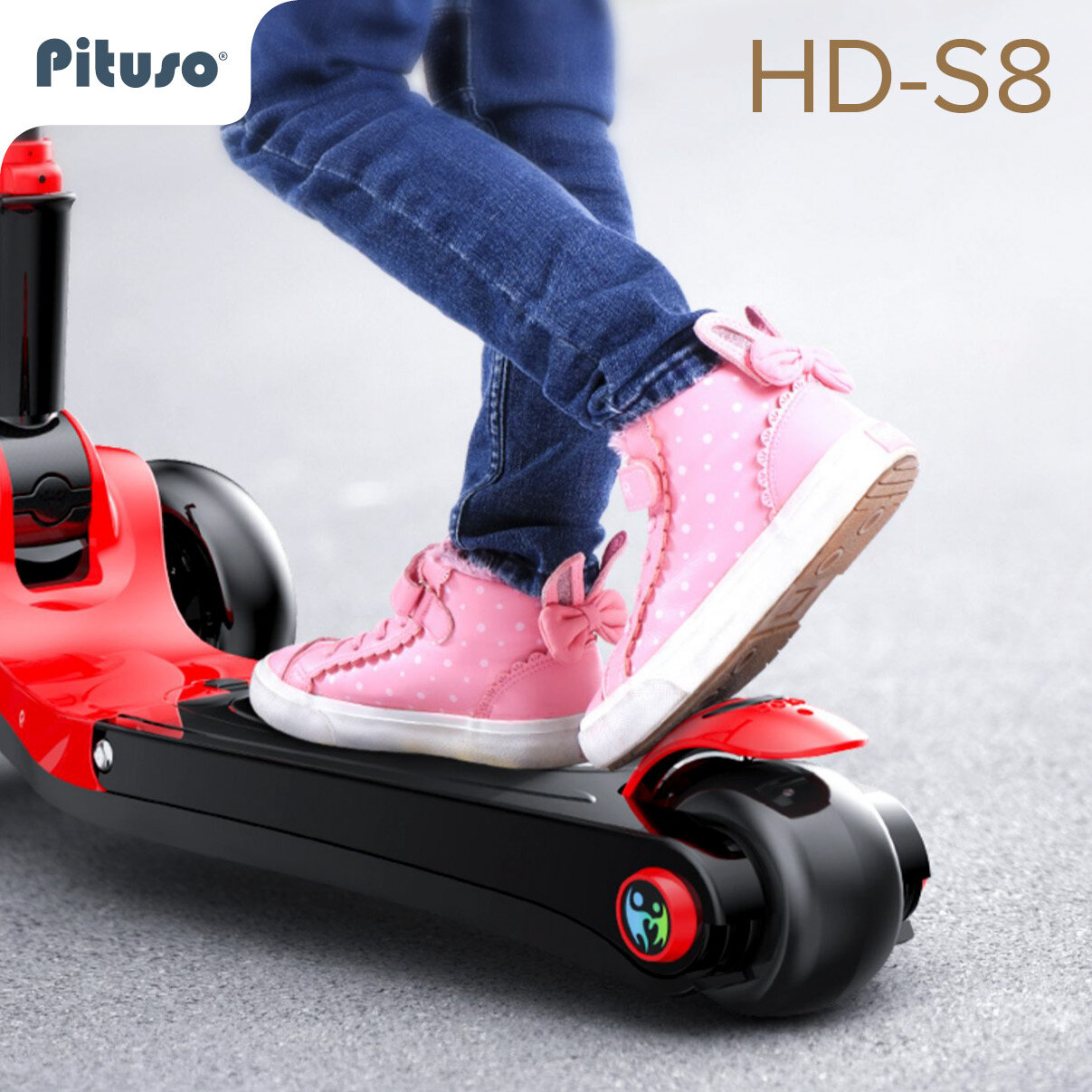Самокат трехколесный детский Pituso HD-S8, беговел с сиденьем, регулировкой высоты руля, светящиеся колеса, цвет красный