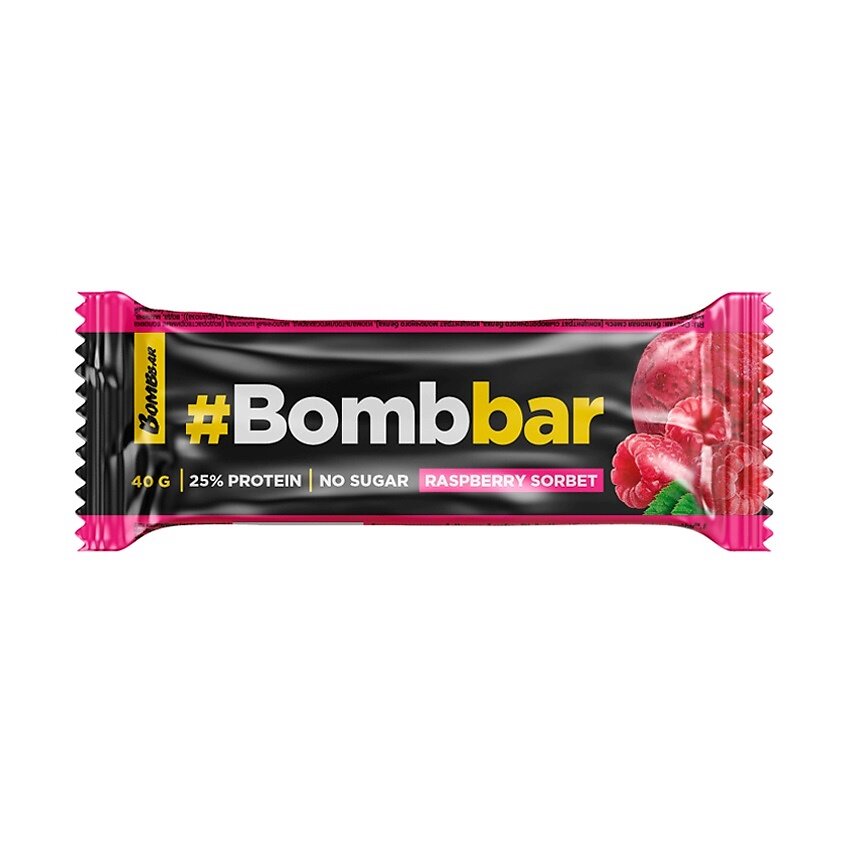 Купить Bombbar Протеиновый батончик в шоколаде без сахара, набор 10x40г (малиновый сорбет) / Бомбар protein bar состав польза для похудения
