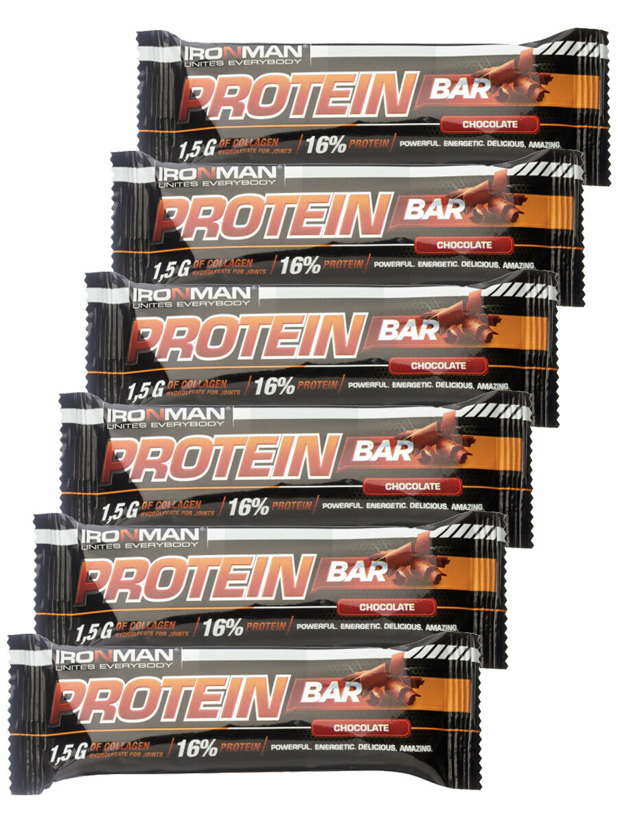 Купить Ironman Protein bar с Коллагеном (Шоколад) 6х50г / Протеиновый батончик в шоколаде для набора мышечной массы женщин и мужчин