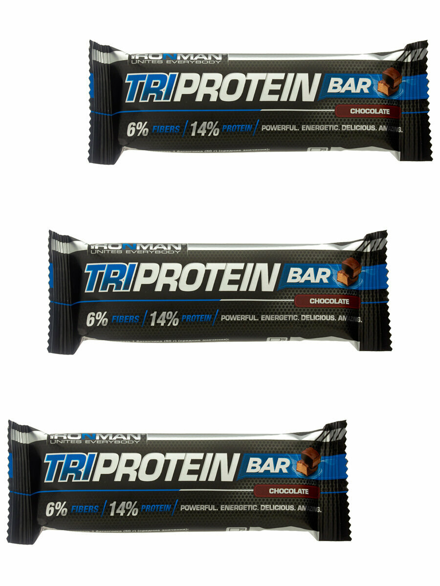 Купить Ironman TRI Protein bar (Шоколад) 3х50г / Протеиновый батончик в шоколаде для набора мышечной массы женщин и мужчин