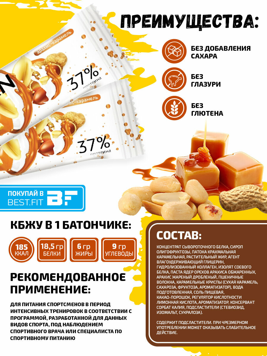 Купить Ironman 37% Protein bar без сахара (Арахис-карамель) 15х50г / Протеиновый батончик для похудения и набора мышечной массы женщин и мужчин