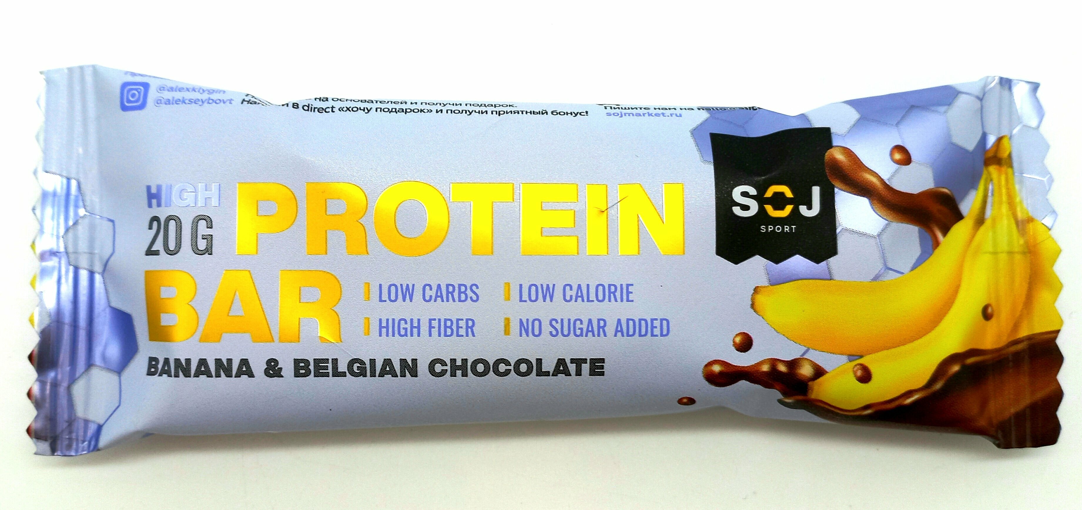 Батончик протеиновый "Protein bar" с вкусом банана в молочном шоколаде без сахара (SOJ), 50 г интересное: