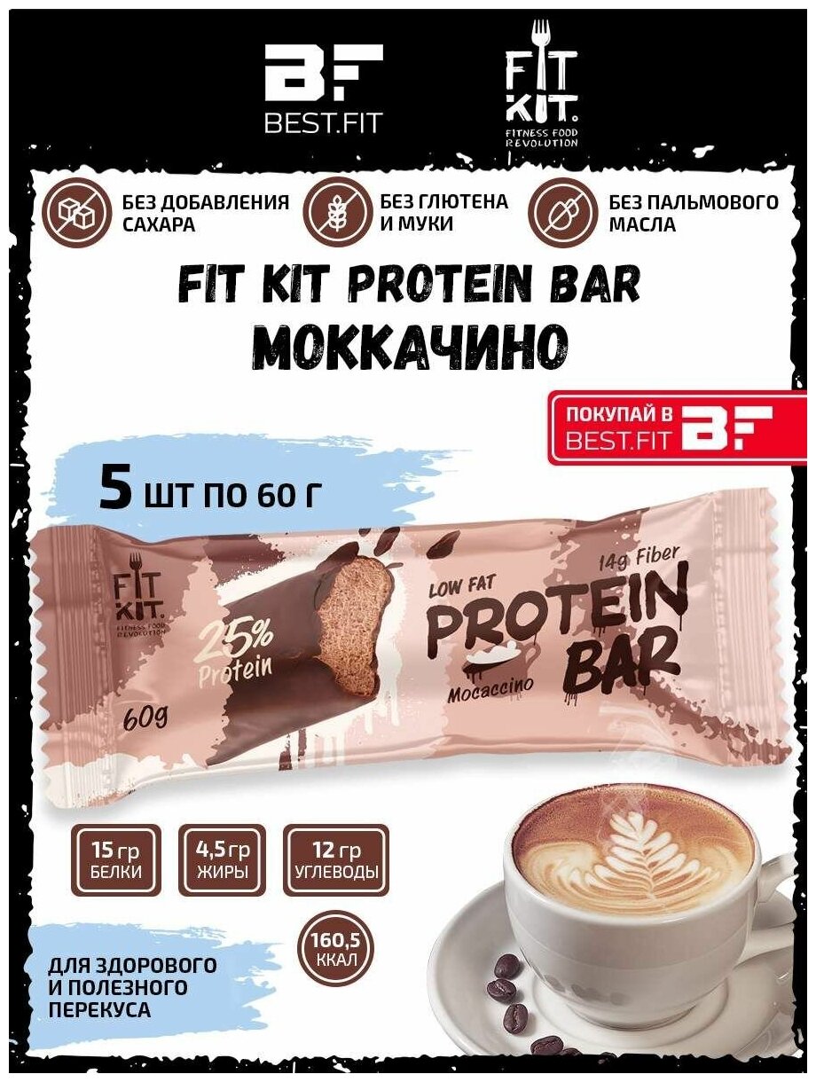 Fit Kit, Protein BAR, 5шт по 60г (Мокачино)