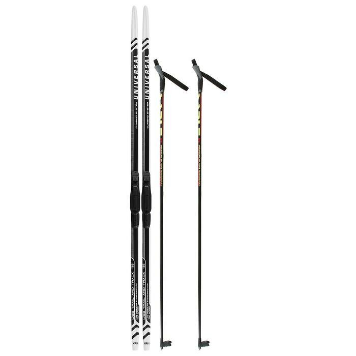 Комплект лыжный: пластиковые лыжи 185 см с насечкой, стеклопластиковые палки 145 см, крепления NNN, цвета микс