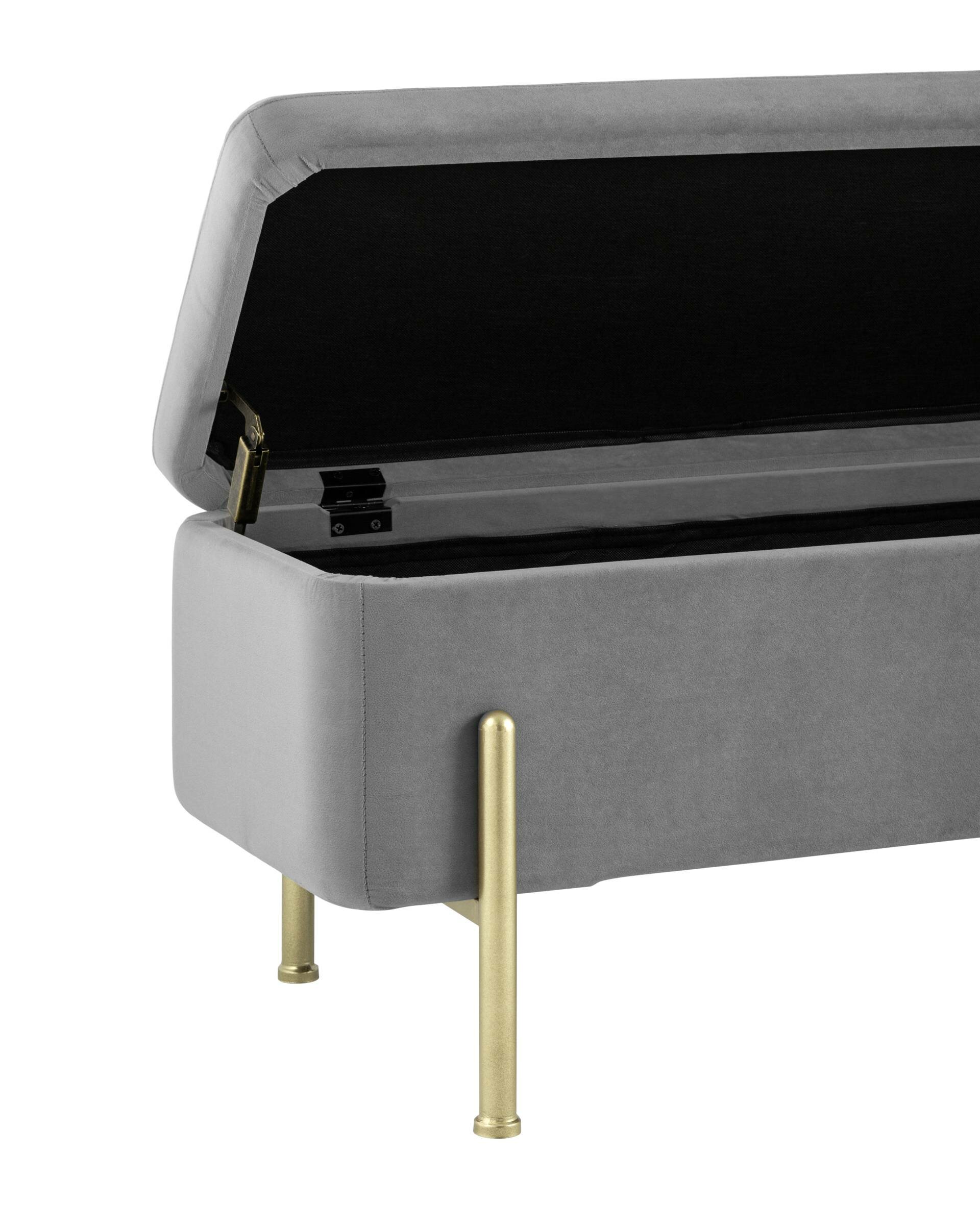 Банкетка Болейн с ящиком велюр серый ножки из металла цвет золото