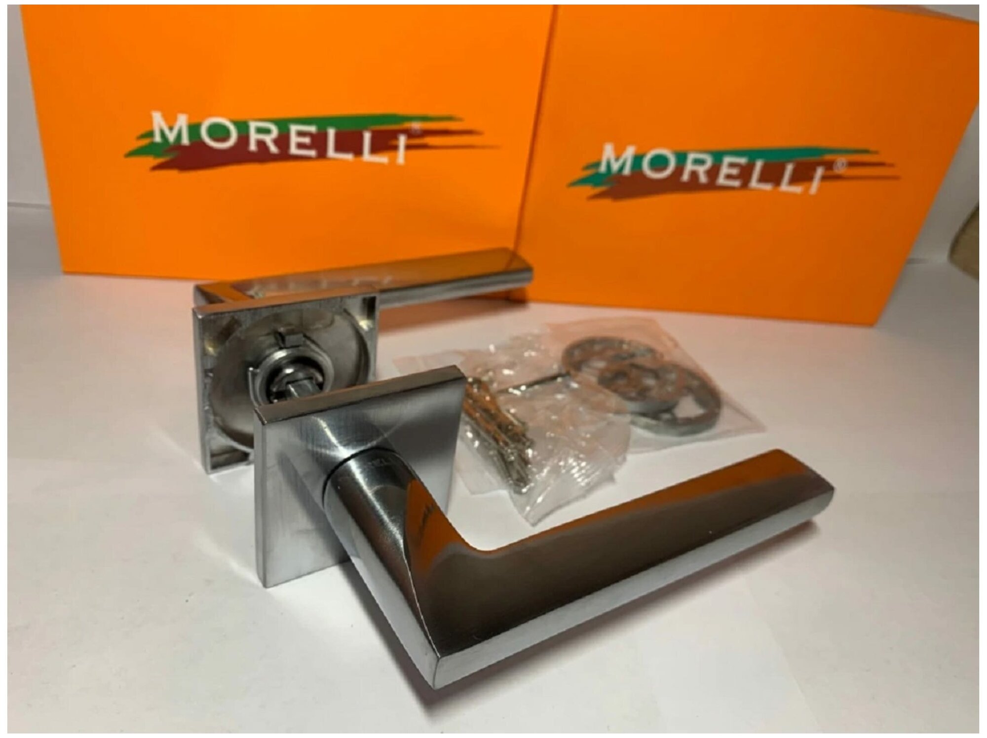 Ручка дверная на квадратной накладке KAFFEE Morelli MH-50-S6 SC, цвет - матовый хром
