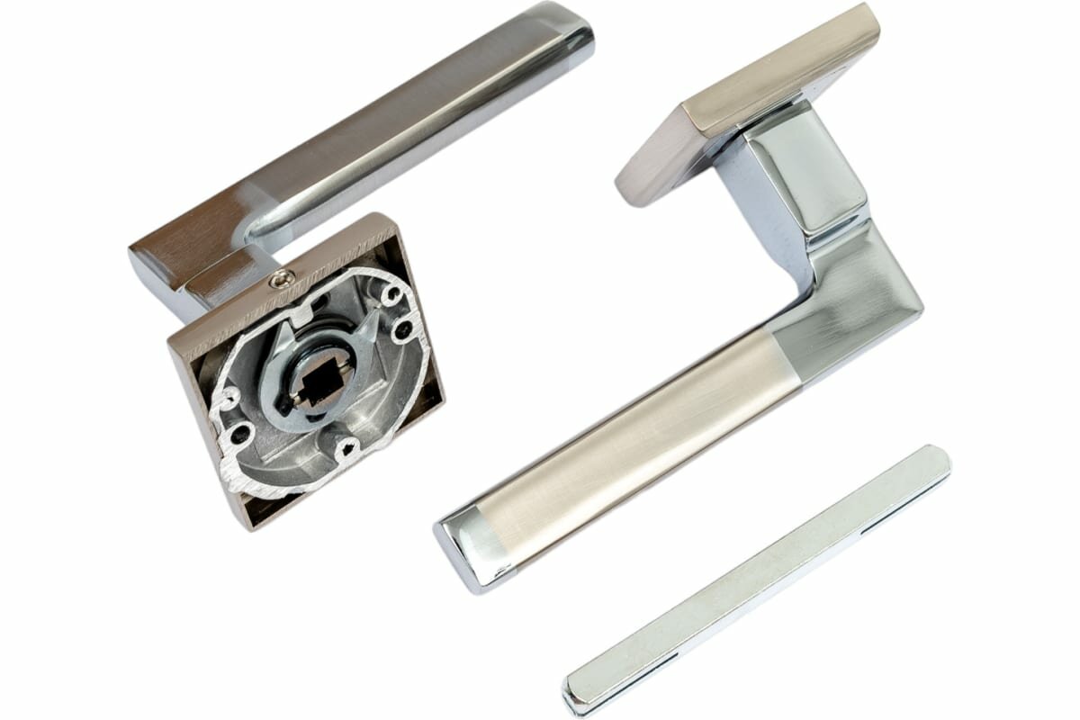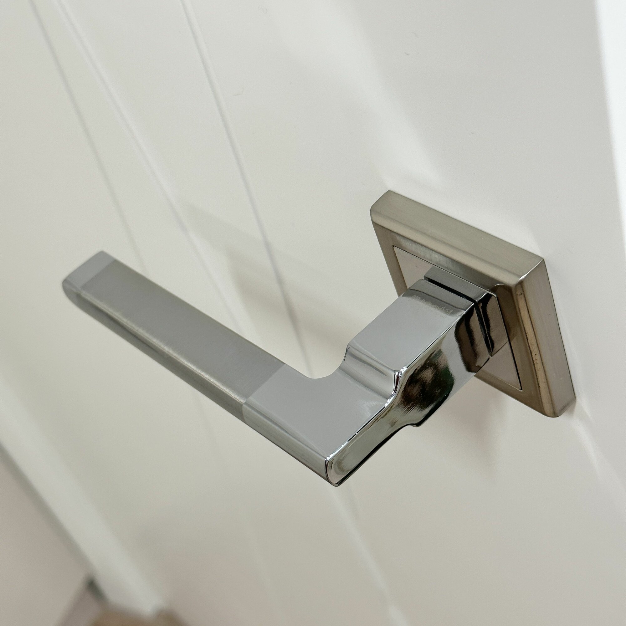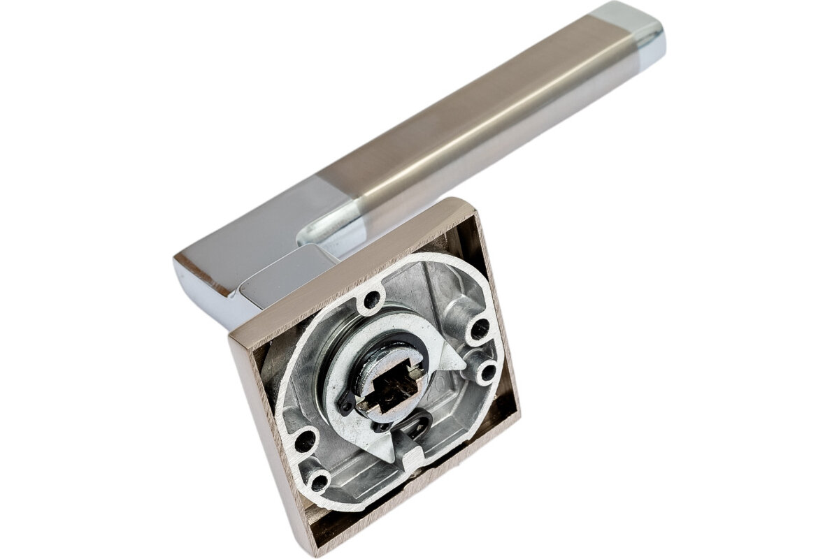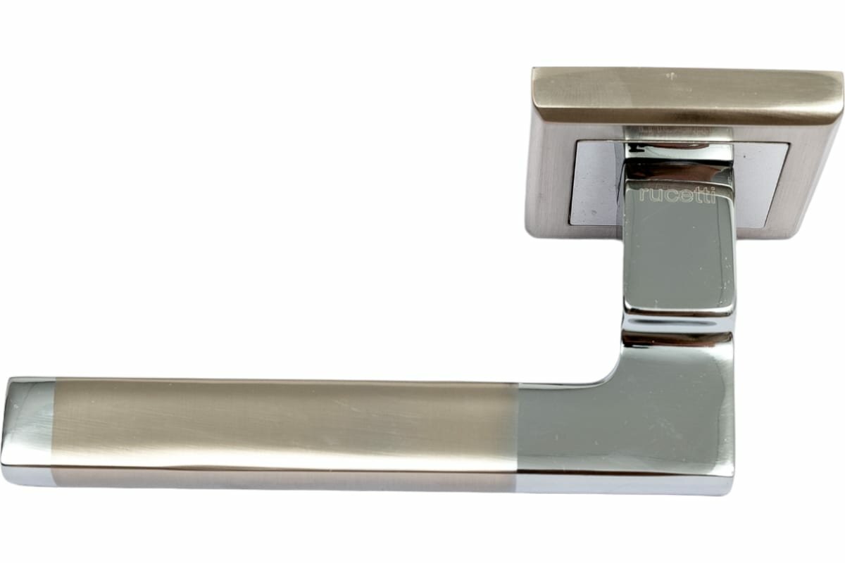 Дверная ручка на квадратной розетке RUCETTI RAP 17-S SN/CP белый никель/полированный хром