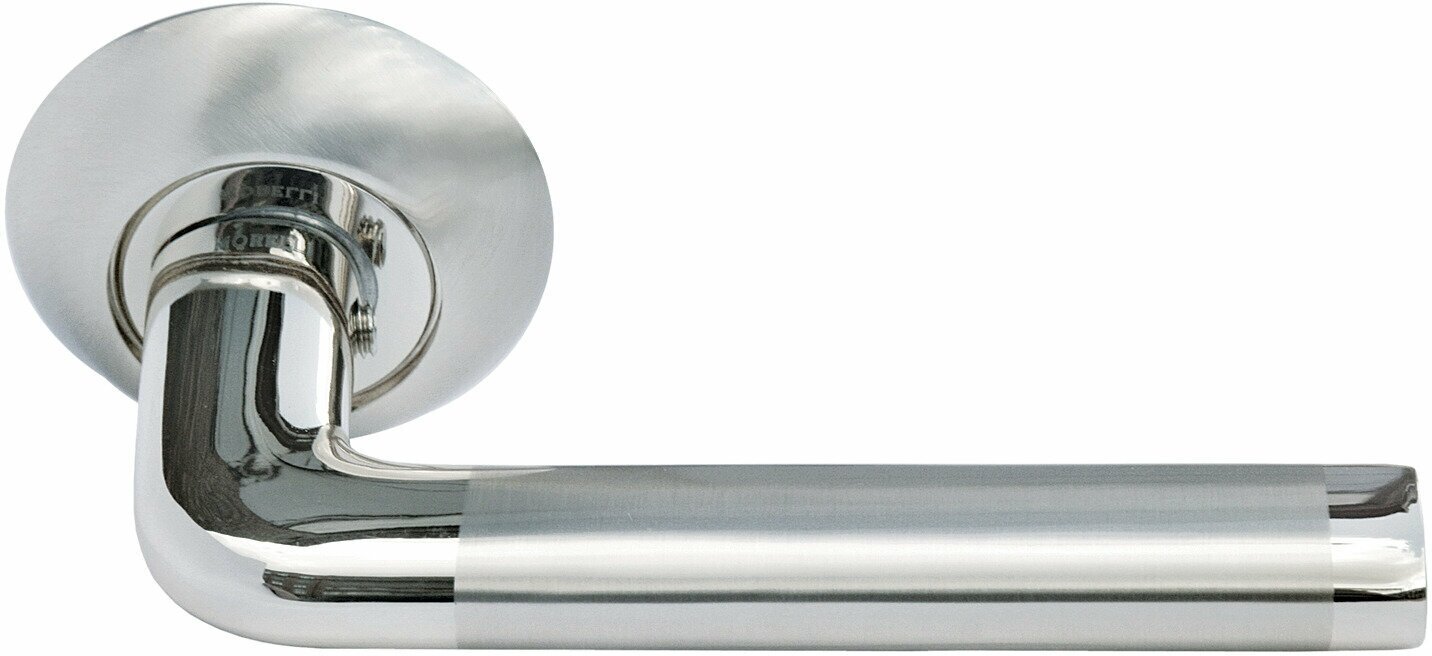 Ручка дверная межкомнатная Morelli MH-06 SN/CP белый никель/хром, ручка для двери на круглой розетке, фурнитура