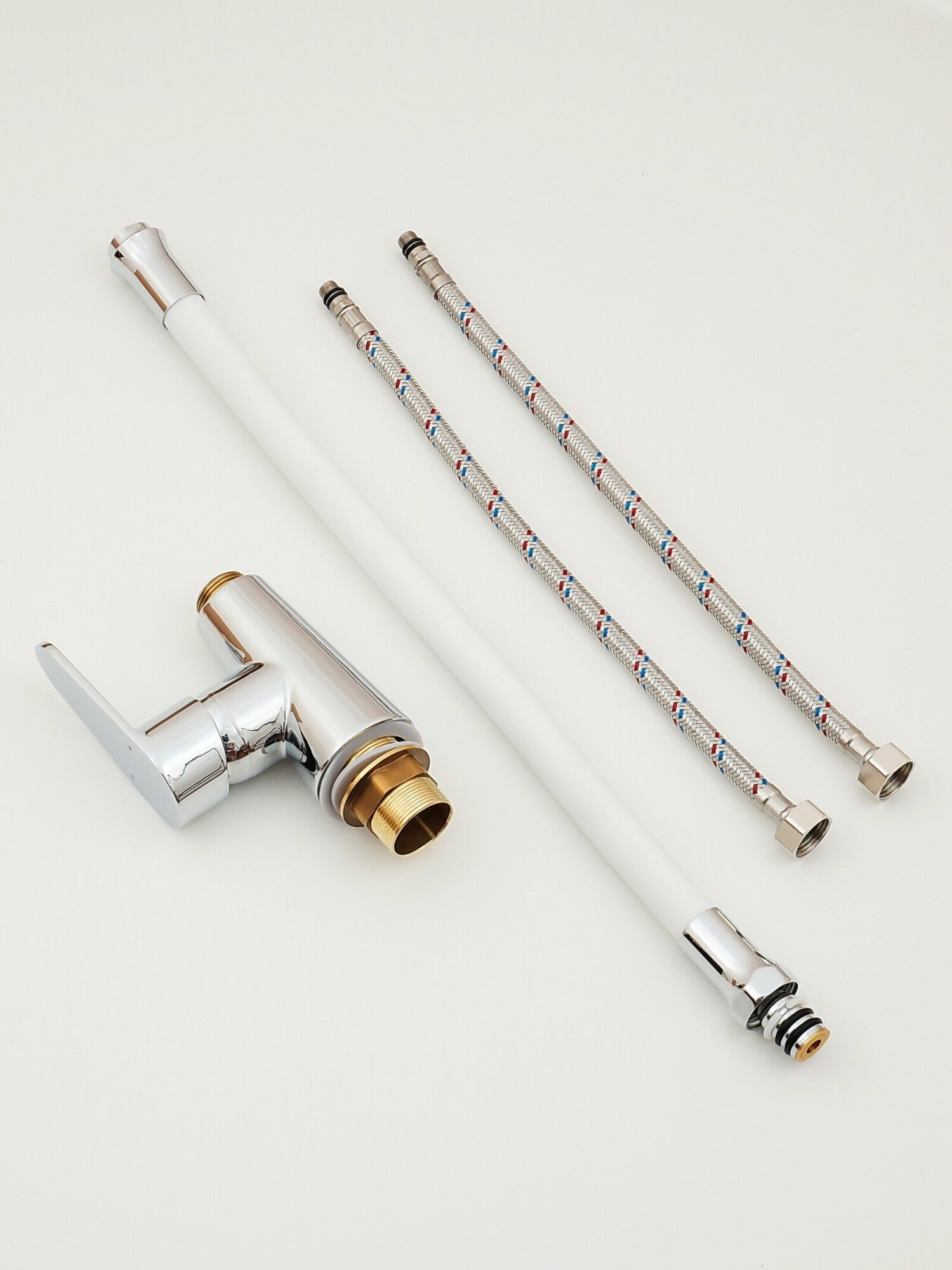 Смеситель для кухни с гибким изливом сборный Potato P4131-7 хром/белый