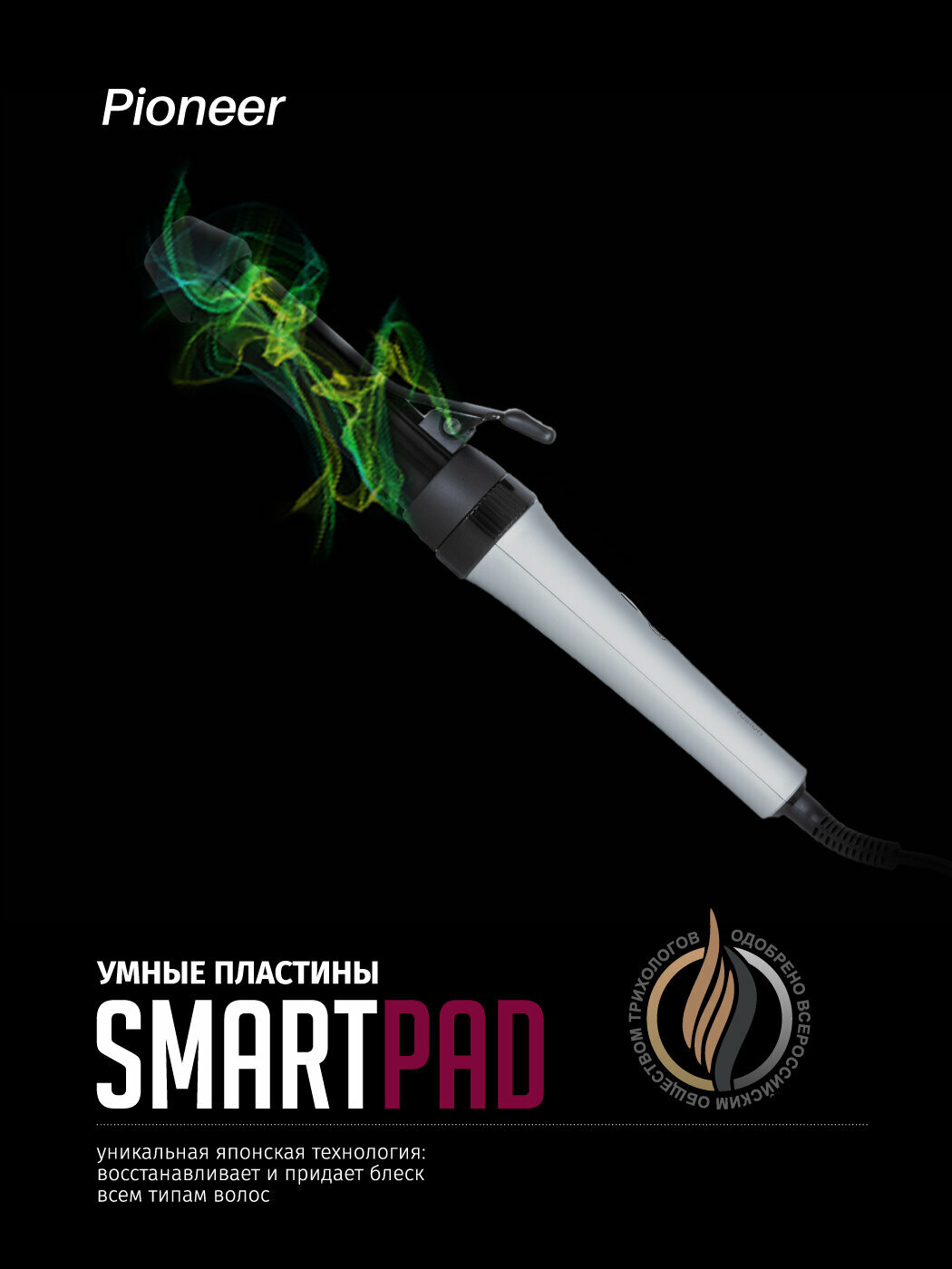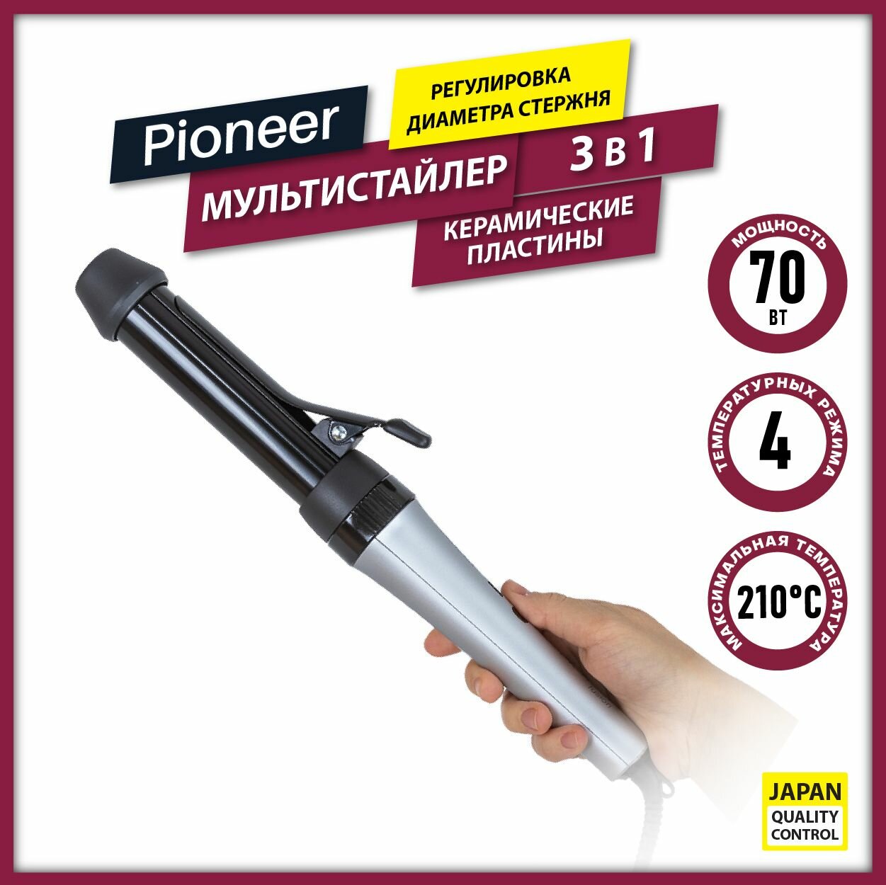 Умный мультистайлер Pioneer 3 в 1 с регулировкой диаметра стержня, керамические пластины, 4 температурных режима